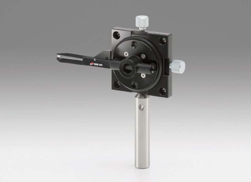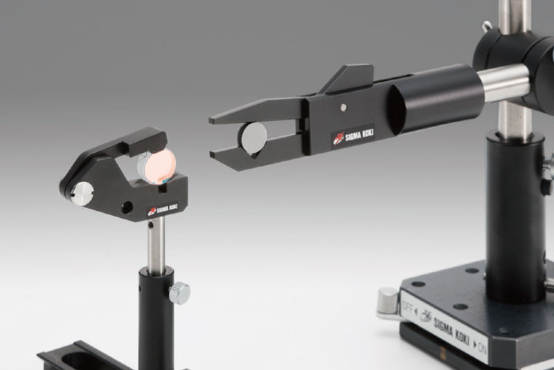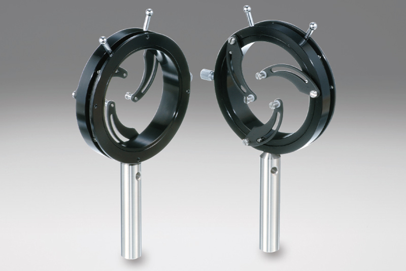 用于固定直徑3毫米以下的微小鏡頭的鏡架。 采用了細(xì)長(zhǎng)夾臂結(jié)構(gòu),鏡頭的前后方容易實(shí)現(xiàn)各種裝置的近距配置。 常被用于固定光纖或半導(dǎo)體激光的準(zhǔn)直鏡。